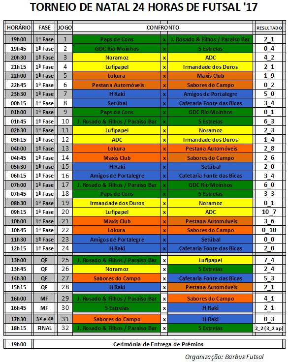 Chegou ao fim mais uma edição do Torneio de Natal 24 Horas de Futsal em Borba e mais uma vez o sentimento de todos é que foi mais um sucesso, um dia muito bem passado, que já vai na quarta edição e no próximo ano regressará!